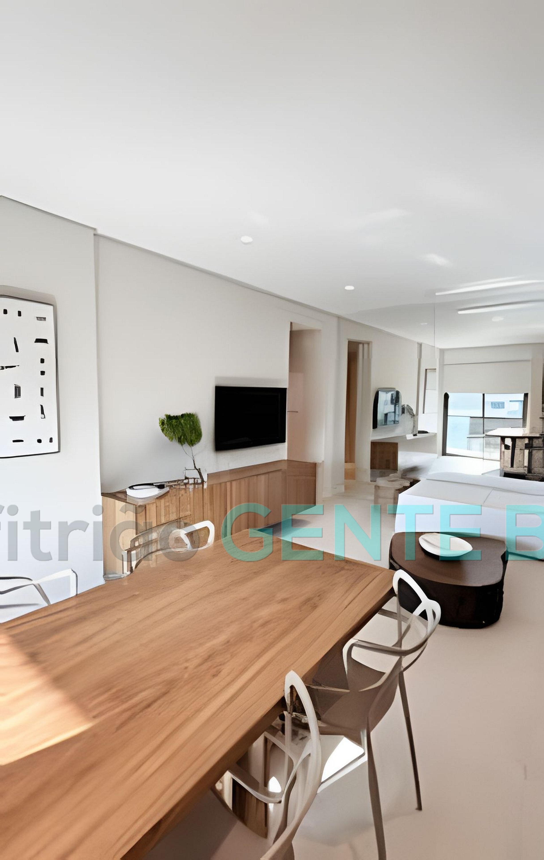 Sala em 2 ambientes, decorada, com sofa cama, rack, smartv de 50 polegadas, Wi-Fi ultra rápida de fibra optica, mesa de jantar e ar-condicionado.