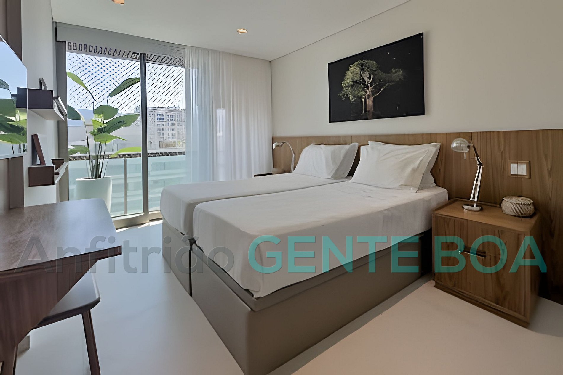 Suíte 02 com 2 camas de solteiro, armário, ar-condicionado, banheiro privativo, cortina black out.