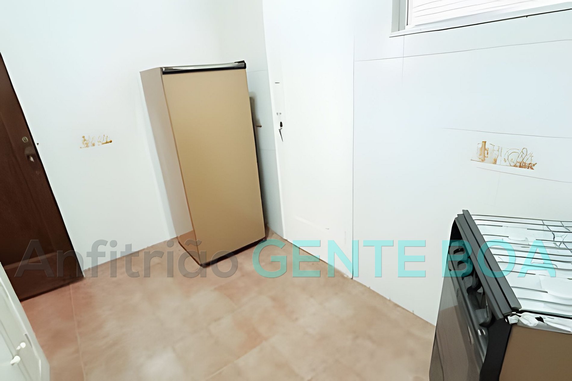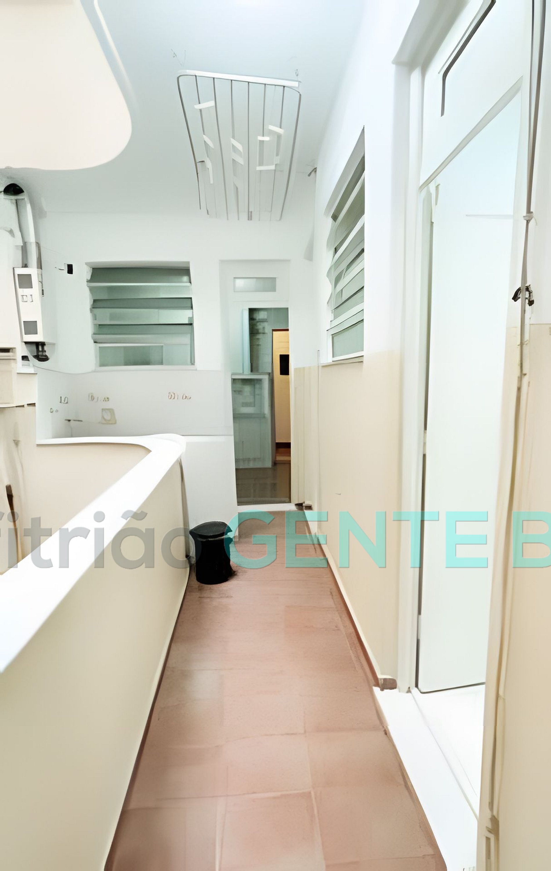 Cozinha, área, banheiro completo de serviço e quartinho.